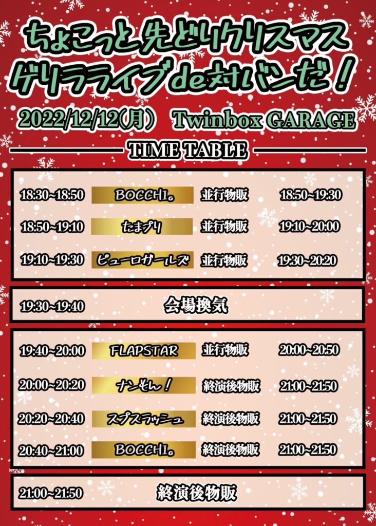 「ちょこっと先どりクリスマス ゲリラライブde対バンだ!」出演情報