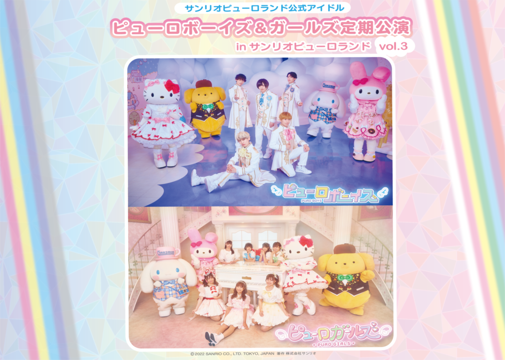 「ピューロボーイズ&ピューロガールズ 定期公演 in サンリオピューロランドvol.3」ではお客様にSNSなどで積極的に拡散していただき、まだピューロボーイズ、ピューロガールズを知らない方に魅力を伝えていただけるよう、カメラ・携帯電話等での静止画撮影のみ可能となっております。