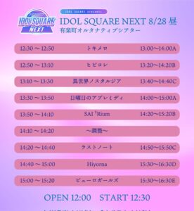 「IDOL SQUARE NEXT 8/28昼」出演情報