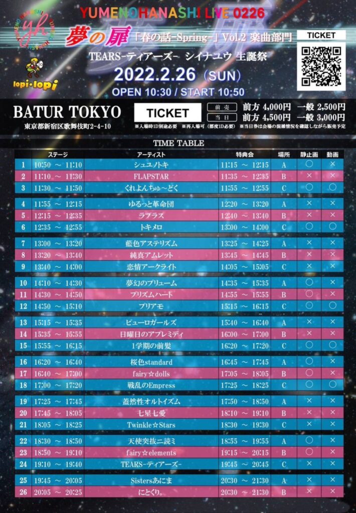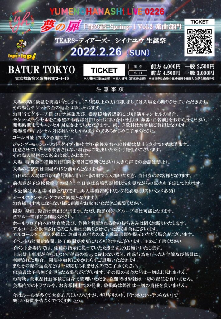 「夢の扉『春の話-Spring-』Vol.2 楽曲編 ~TEARS-ティアーズ- シイナユウ 生誕祭 スペシャル」出演情報