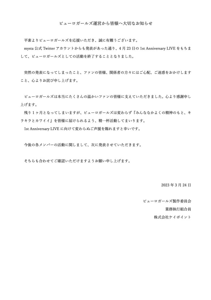 ピューロガールズ運営から皆様へ大切なお知らせ